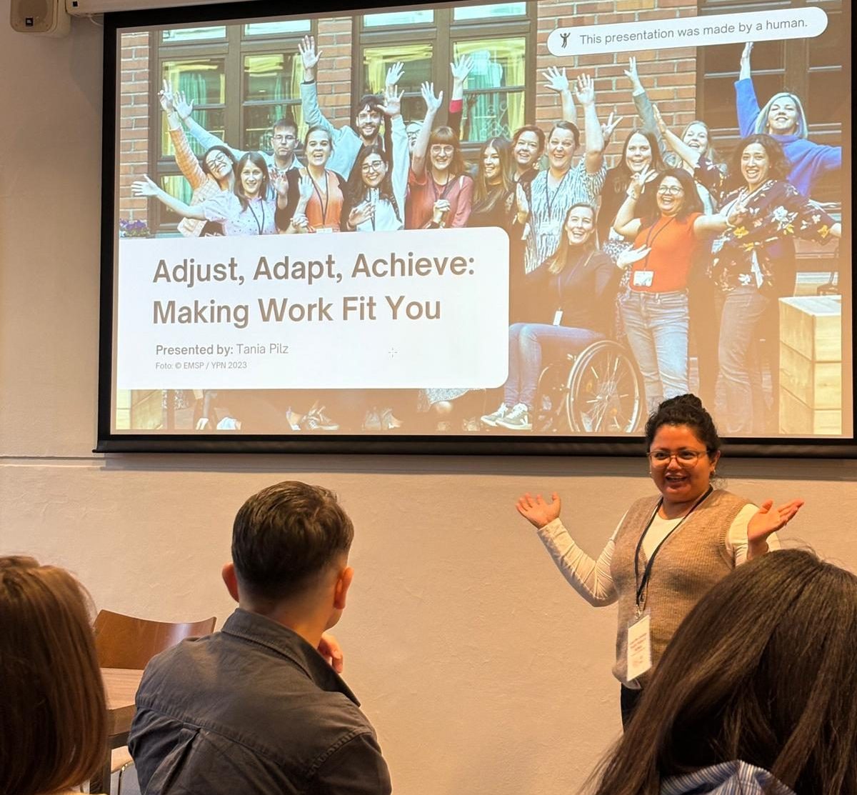 Tania Pilz, Young People Representative on the EMSP Executive Committee, facilitated sessions on understanding disability in professional contexts. In small groups, participants shared their experiences, some recently diagnosed and processing what their condition meant for their careers, others facing new workplace challenges as they took on more responsibility. During a roleplay exercise, participants practiced explaining their condition to an imaginary HR manager in 2-3 minutes. The exercise revealed how language shapes these conversations. By the end of the session, participants had refined their approaches—moving from clinical descriptions of their diagnoses to clearer articulation of their workplace needs, professional strengths, and boundaries. The module provided frameworks for deciding when and how to disclose, rather than prescribing a single approach.